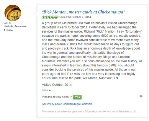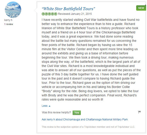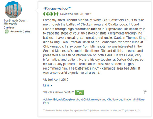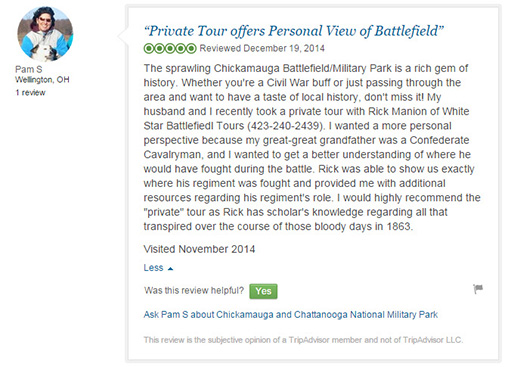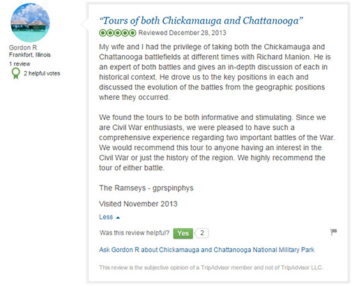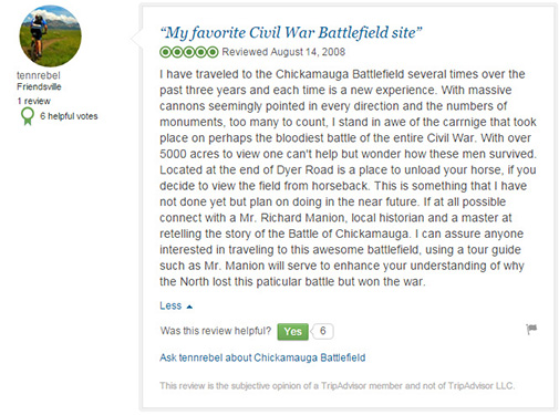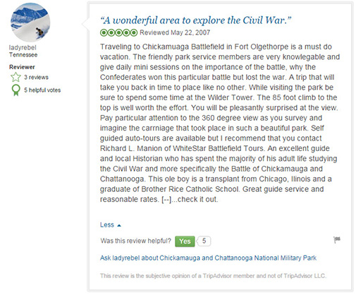 The below reviews are from Trip Advisor. You can read more reviews of the area battlefields at these links...